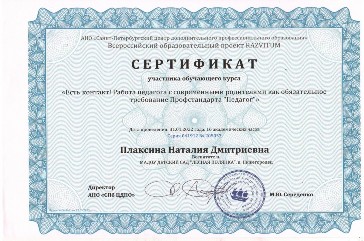 Курсы повышения квалификации по программе "Профессионально-педагогическое сопровождение развития детей дошкольного возраста в соответствии с требованиями ФГОС ДО" 72 часа в 2019 году.